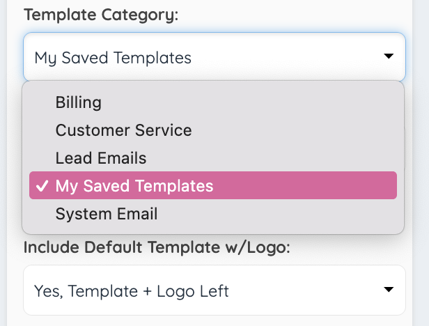 Once the email template has been saved, the template can be used when composing an email within the "Template" drop-down: