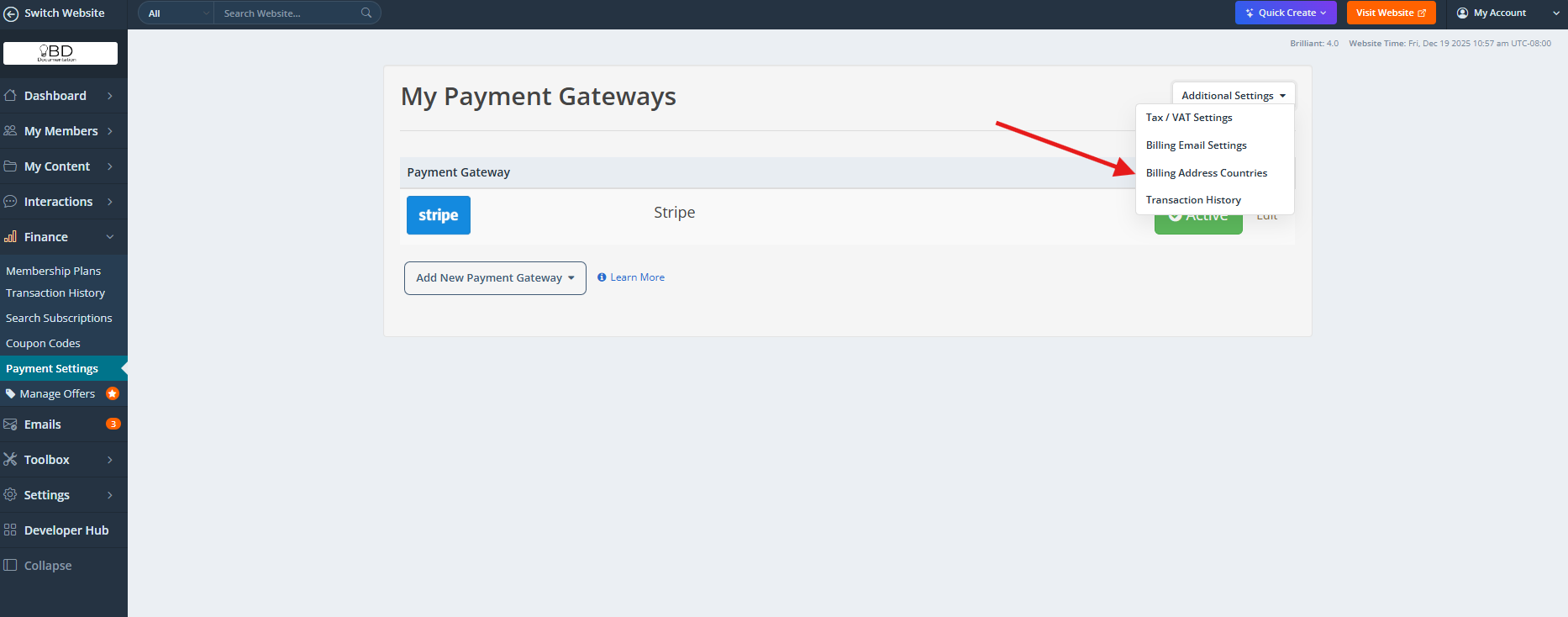 Finance » Payment Gateways » Additional Settings » Billing Address Countries