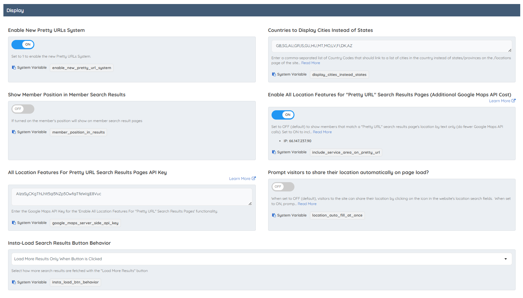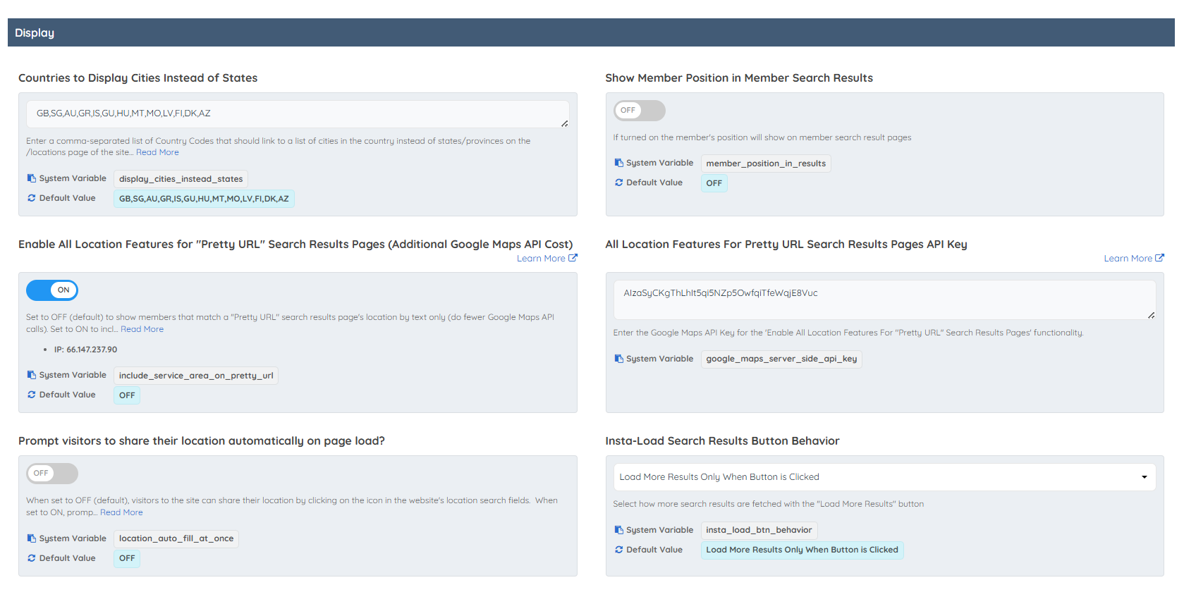 Enable All Location Features for "Pretty URL" Search Results Pages (Additional Google Maps API Cost)