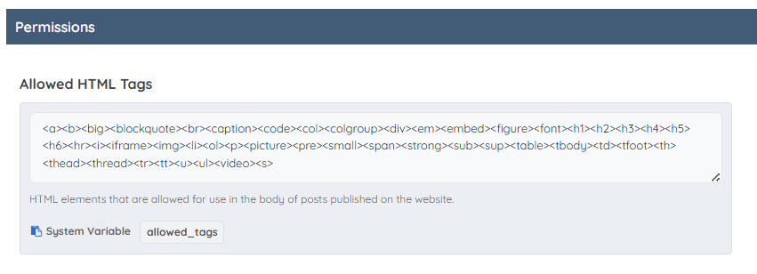Allowed Frontend HTML Tags