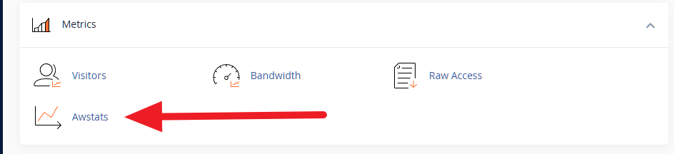 - Navigate to the "Metrics" section and click on the "AWStats" icon