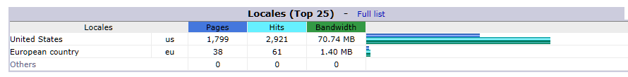One critical piece of information here is the "Bandwidth" column, which gives an indication of how much bandwidth has been consumed by humans vs bots.